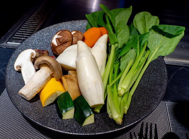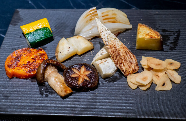 焼かれた野菜も絵になる見事な焼き具合。深い甘み、旨味、食感がそれぞれ楽しめますね。ある意味影の主役です。
