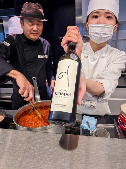 リゾットに合わせるのはANA国際線ビジネスクラス採用白ワイン。