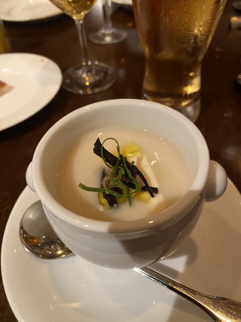 毎年、嫁にブーブー言われながら(僕の推測)渡仏してワインを飲んだくれているだけあって、シェフのソムリエとしての能力も相当のモノである。食事の時にリコメンドされるワインの的確なこと。素晴らしい!値段も3000円くらいからのリーズナブルなものが数多く用意されており、嬉しい。客の懐具合で提供するメシや酒を決めるのではなく、腹具合で決めるのがシェフの良いところ。実直な人間性が出ている。お喋り過ぎる時は煩いけど。(爆)