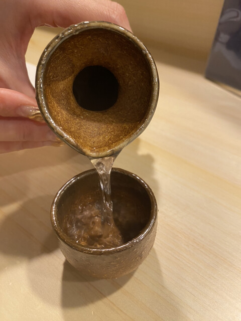 次に、金目の炙りとつぶ貝のお造りと一緒に、福井の酒、九頭龍を冷で頂きました。その後は久寿玉の燗のお銚子を3本グビグビ。