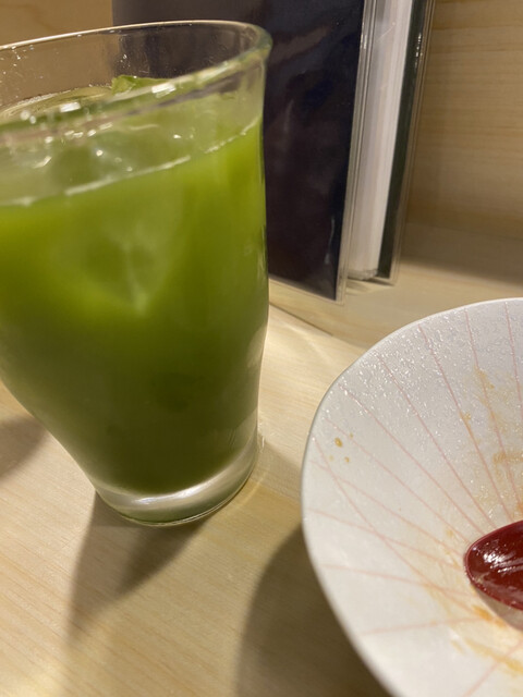 寿司を食うときは、決まって日本酒です。今日は途中て、チェイサー代わりに抹茶ハイを何杯かおかわり、ここの抹茶ハイの抹茶はエエ抹茶使ってはります。