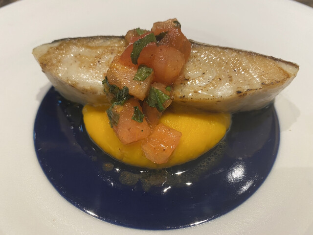 一番最初の鉄板料理、鰆も脂が乗ってパンプキンソースとトマト&バジルが合うわけです。最初は、レモンサワーを頂きながら...オマール海老がフランベされ、良い色になったころには、白のグラスワイン(シャルドネ)を頂きました。オマール海老のアメリケーネソースが香り高いシャルドネとのマリアージュです。この店のグラスワインはリーズナブルな値段でしたが、味も良く、ワシはグラスワインで十分でした。