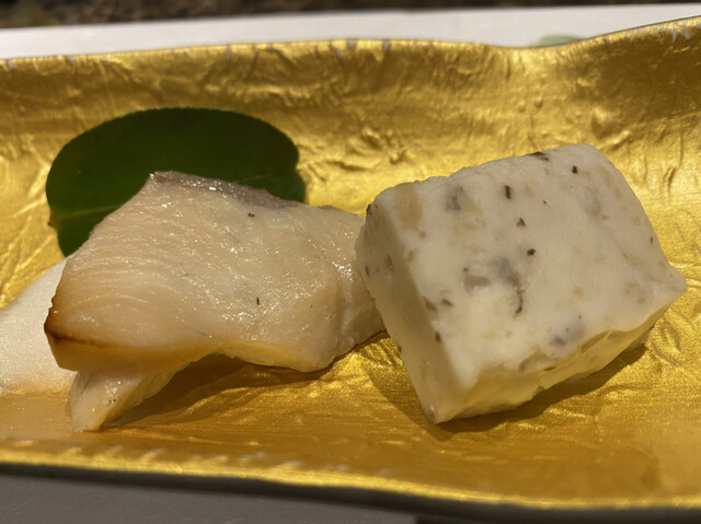 コースの前菜や、途中に出てくるものは、海鮮系の逸品が多く、それらも鮨の名店仕込みですから、美味いわけです。中でも、茶碗蒸し雲丹ソースがけキャビア添えも塩味が丁度良く、美味しかったです。