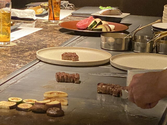 美味しい料理は、素材の良さと火の入れ加減、そして、味をシッカリ決めることやと思ってるワシは、美しいだけの嫁と名駅の鉄板焼きでオマール海老と国産黒毛和牛サーロインを頂きました。