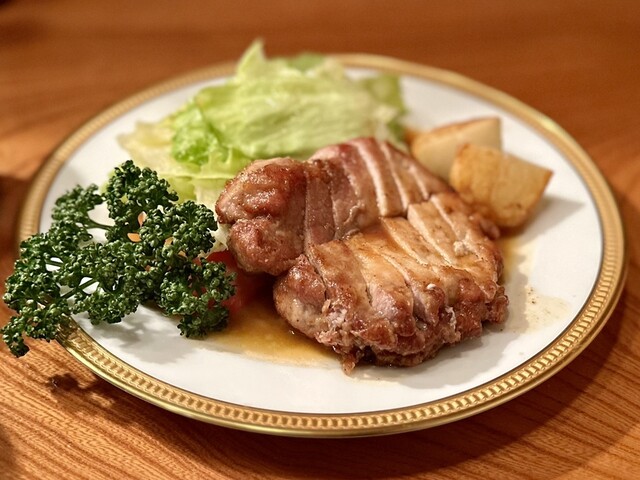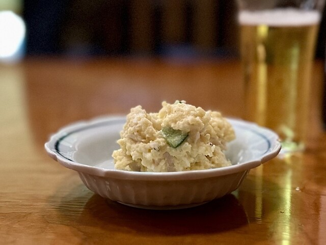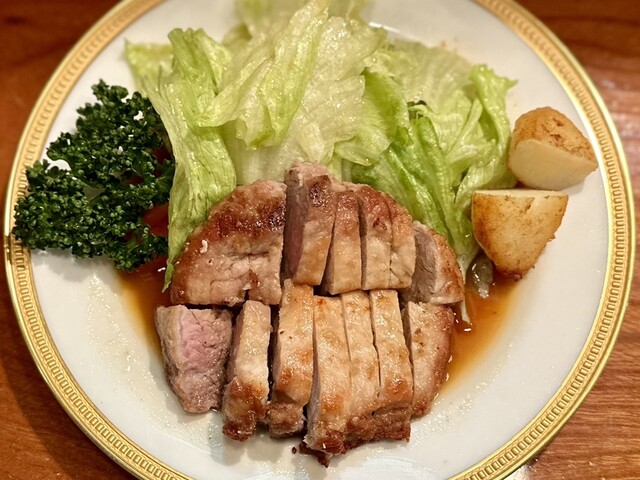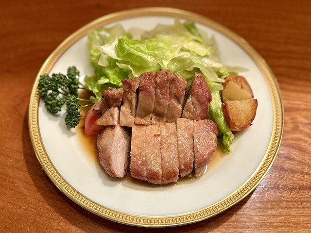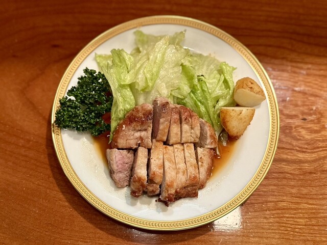 この店のポークソテーは本当に絶品である。甘辛い醤油ベースのソースが、芳醇なバターの風味と調和しており、至福の味わいである。付け合わせの野菜やジャガイモ、そして、お通しのポテトサラダも、すべてが高品質である。