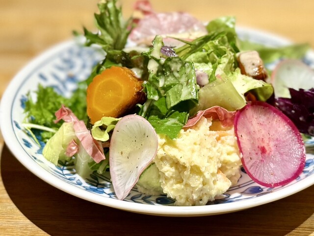 メインの前に提供されるセットのサラダとスープもまた格別。細部にまで行き届いた心遣いが感じられる。