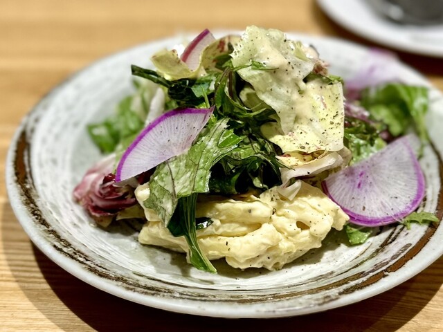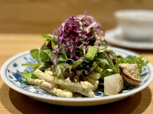 その名の通り多種多様な秋の野菜を使用している。彩り鮮やかなビジュアルが目を楽しませ、味わいも素材の良さを最大限に引き出していた。店員さんと相談してスモールポーションにしたが、十分満足のいく量だった。ドレッシングの味付けは控えめで、野菜本来の味を楽しむことができる。