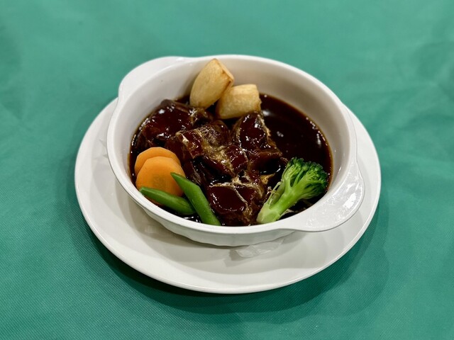 デミグラスソースのビターな味わいが特徴で、牛肉はトロトロ、付け合わせの野菜もクオリティが高い。