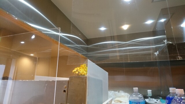 店内に入るとエアコンやサーキュレーターと換気扇で豪快に換気し、カウンターはお客様の飛沫対策が施されてました(^-^ゞ