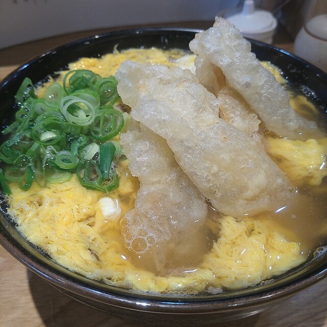 他人ごぼうきつね(天うどん)は出汁が麺だけでなく卵とじに絡み、きつねが出汁を吸って最高です(◍•ᴗ•◍)
