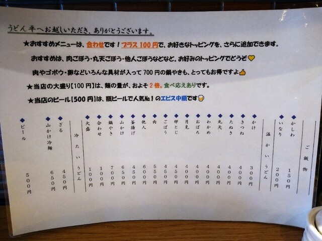メニューにある『合わせ100円』がトッピングのことです❗ベースとなるうどんとトッピングの具材が高いほうのうどんがベースとなります❗