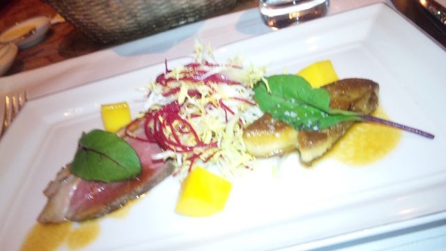 鴨のロースト&フォアグラは仕込みが素晴らしく、鴨肉の甘みが引き出され超美味い!フォアグラは表面はサクっと中はふんわり。食感は最高!味も私好みの甘酸っぱい味!口直しに酸味のあるマンゴーが添えてある!