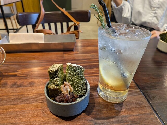 お友達はほうじ茶ラテを飲んでいましたが、可愛いグラスで提供されていてオシャレでしたよ!