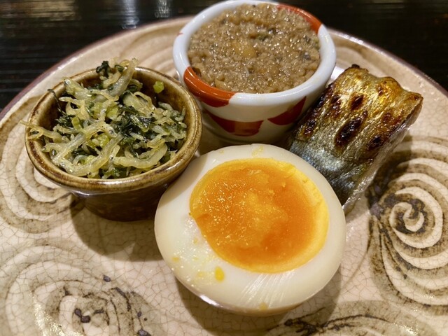飯物おかず 煮卵 しらす なめ茸山椒 糠漬け めざし