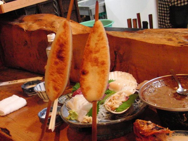 囲炉裏からマスターが「ホレっ喰え~」と笹カマをっ^^ デカいっ!うまいっ!