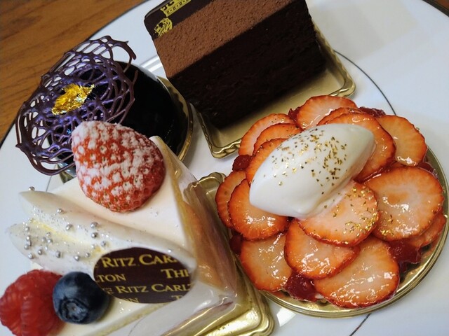 全てがパーフェクトで芸術的♡お姫様気分で頂くリッツのケーキはまるで宝石をあしらったブローチのよう(〃∇〃)♡一流の味をお持ち帰り出来るリッツカールトングルメショップ~