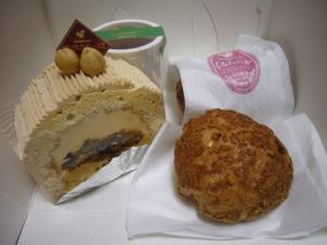 プリン(210円)、くるみのシュークリーム(147円)、ノワール(399円)