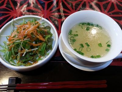 熱々をぜひ、と勧められたスープは、しっかり鶏のダシがでたやさしい味。