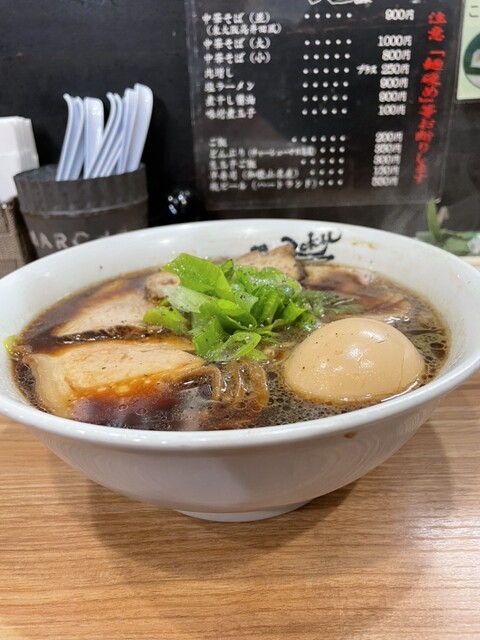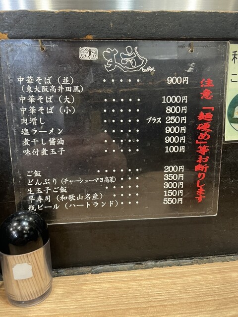 裏難波来たら高井田ラーメン食わな帰られへん!ってことで大阪を代表する裏難波の名店へ。開店前に到着しポールポジションゲット。店内は相変わらず著名人のサイン色紙がたんまり。東大阪高井田ラーメン並、味付玉子、肉増し、和歌山名物早寿司@1,400円をオーダー。まずは笹の葉で包まれた早寿司(きずし)を食べながら待つこと数分。着丼したラーメンは真っ黒スープ、醤油際立つた上品さ。ついつい飲んじゃうあと引く中毒性あり!中太ストレート麺と合いまくる。チャーシューと細切れ肉はジューシー、味付玉子も当然美味い。大変ご馳走様でした。