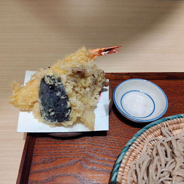 天ぷらは海老・舞茸・茄子・さつま芋と季節感を楽しめ、塩でいただくとサクサク衣の食感も楽しめました。