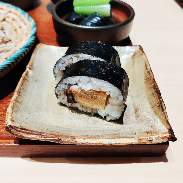 メインのお蕎麦に天ぷら・太巻き・小鉢2品・デザートがついた御膳です。