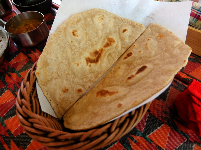 小麦でなく大麦を使った円形の「ロティ」もおすすめです。