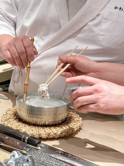 長万部のほっき貝 80秒ボイル2秒氷水でしめて。柚子の香りが。