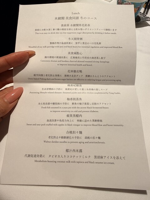 水綾閣 美食同源冬のコースを横浜にお住まいのマダムと。