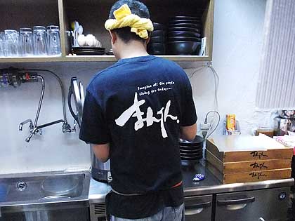 今週は土曜までシゴトの予定・・・わりとハードです。そやのに、しっかり飲みの予定は2回入ってますけど、なにか?9月19日 訪問: (F200EXR撮)通勤に使うJR。大阪環状線の西側、ちょっとディープな地域を一人飲み〜「途中下車の1軒酒」をやってみよかなって。なんつっても交通費ゼロ、がウレシイやん。ネライは、西九条、弁天町、大正辺りやね。で、最初に選んだんは大正駅前。(☆o☆)キラーン、この方のブログ見て。前から存在は知ってました。場所が不便やってんけど、駅近に移転したとのこと。こりゃ、行かなアカンやん♪「大正橋 まんてん」。なにわとんこつラーメン。どーれ。 初潜入〜カウンター席、まだ新しくてキレイやね。まずは瓶ビール。中瓶、450円。 500円切ってるんがええやん。メニューをば♪シンプルやん。アテ系で。 チャーシュー盛、500円。とろり半熟玉子。うまっ!!豚バラのチャーシュー。じゅわっと脂がオイシイ〜たまらん♪タレがついててこれがまた旨い。メンマ、刻みネギ、にキクラゲ、キャベツも。これはええおつまみです。 オススメ〜大将も話好き、アイソのいい方でした。ブログの写真も快くOKいただきました。駅近に移転され、いろいろメニューも変えられたらしい。前より肩の力が抜けたとか。いろいろ話してくれましたわ〜芋焼酎、ロックで、400円。「島美人」。長島研醸有限会社。 芋らしい旨みたっぷりやった。大将もお酒好きらしい。 話も合うわー!では。こってりラーメン、680円。 麺は中細くらいかな。 案外、あっさりめの豚骨スープ。しつこくなくウマイ。 クセがない。 味はしっかりめです。はい! 完食、全汁〜あー美味しかった。1軒だけちょい飲みのはずやってんけど・・・大将に近所にええバーがあるよ、と教えてもらいましてん。せっかくやから? 寄っていきますか!ごちそうさんでした♪大正橋 まんてん大阪市大正区三軒家西1-4-2006-6551-412911:30〜14:00 17:30〜23:00月曜定休大正橋 まんてん