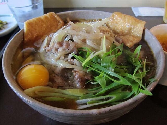 「めん処・むく」-66 堺・浜寺 トロトロ新玉ねぎの牛肉ぶっかけ&定番きつねうどん♪ 190402
