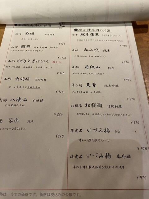 店員さんの対応も抜群で、味も抜群。特にお通しのお刺身が感動でした。お通しは1人600円なのですが、初めておかわりしました。そのくらい美味しいお通しでした。ただ、お通しと言ってもお刺身の盛り合わせで、しっかりしたお刺身の盛り合わせが出てきます。このお刺身盛り合わせがまぐろ、かんぱち、生しらす、かつおで、お通し史上1番美味しかったです。その他のお料理も抜群に美味しく、平塚ならここしかないんじゃないというレベルでした。