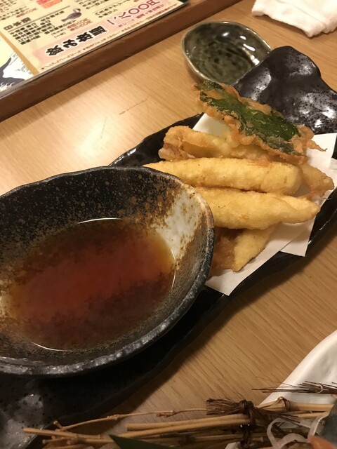 ヤングコーンの天ぷら、ちょっとかわってるけど、ヤングコーンの食感が本当に良くてしかも甘い。