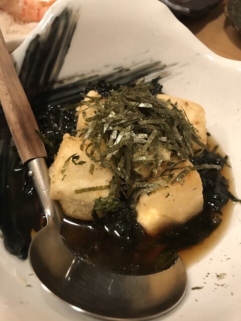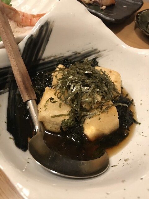 揚げだし豆腐も初めて食べたけど、あっさりした感じがいい。ノリのアクセントが重要。