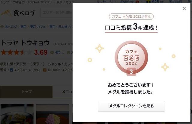 カフェ100名店 2022 3店口コミ達成 (2024/01/19)
