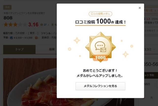 口コミ1000達成 乃木坂808さん (2024/05/11)