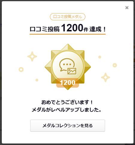 口コミ投稿メダル 500 取得♪ (2020/08/05)