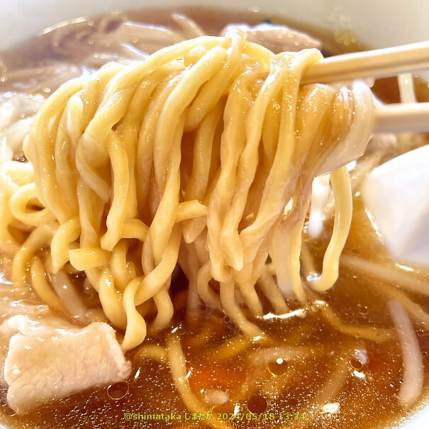 これがもやしそばというものです。醤油ベースのスープは塩味極少,鉄鍋の香りとやわらか味の餡に包まれたシャキシャキもやし。この下に泳ぐのは中太の平縮れ麺。