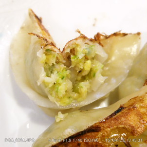 【餃子】みじん切りキャベツとニラが シャっキシャキぃ。