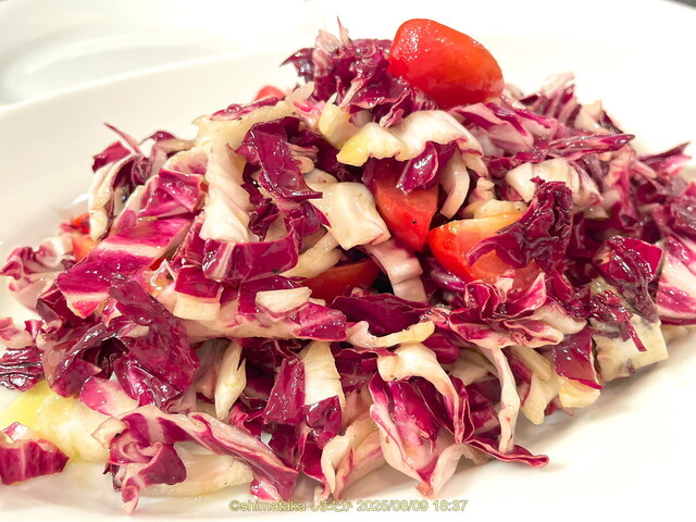 • 今日の葉野菜は赤キャベツ! 爆盛りだけど食べ口軽くて爽やか。
