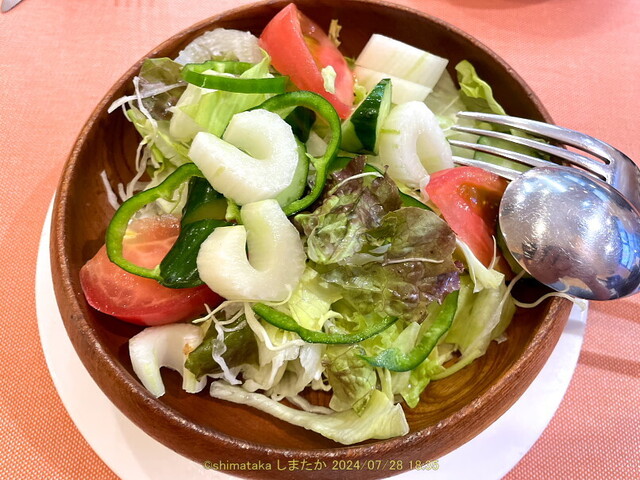 ミニサラダは 気候のせいか,そもそもサラダとミニサラダは内容が違うものなのか,ピーマンとセロリの姿が無かったのがいささか残念に思ったが,野菜のシャキシャキ感とマヨネーズとポン酢を絡めたようなドレッシングは美味しく,「コレコレ」という感じで一皿ペロリといただいてしまいました。
