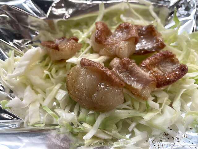 (我々が頼んだ)塩 を振ってやはり手切りキャベツにもって出してくれます。
