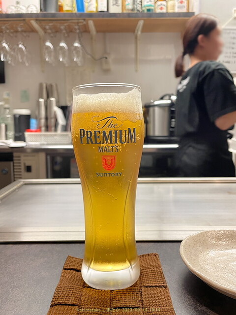 減塩のことをちゃんと覚えててくれて,自分用のはおたふくソース薄めに塗ってくれる(実はイカゲソもね)。ソースの味でごまかしてない,生地に絡んだ魚粉の香ばしさ,焼けば臭みが飛び香ばしさだけが残るにんにくの味,そばのもっちりカリっと感など一体となって自分のお好み焼きストライクゾーンど真ん中♪
