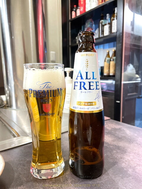 オルタナティブ・アルコールはオールフリー(瓶)をタンブラーに注いでくれます