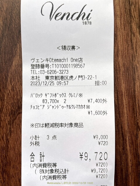 クリスマス用ギフトボックス系3種あったうち,どれにするか迷ったが,今まで贈ったものでないもので,Venchiらしいものと考えこれにしました。