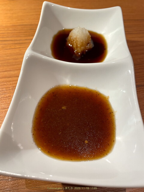 付けダレは大根おろしが入ったものと,お店オリジナルの2種類。