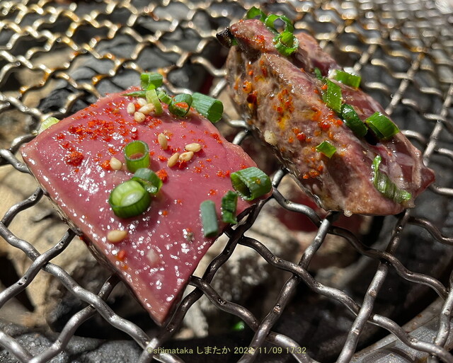 お肉の種類に応じ 食感が良くなるよう,厚切りのブロック状(例:レバー)にしたり,表面に 0.1mm程の筋目を挽いてあったり(例:イチボ)と,包丁さばきが見事! なんでもかんでも薄切りにして皿を賑やかす発想とは全く違います!