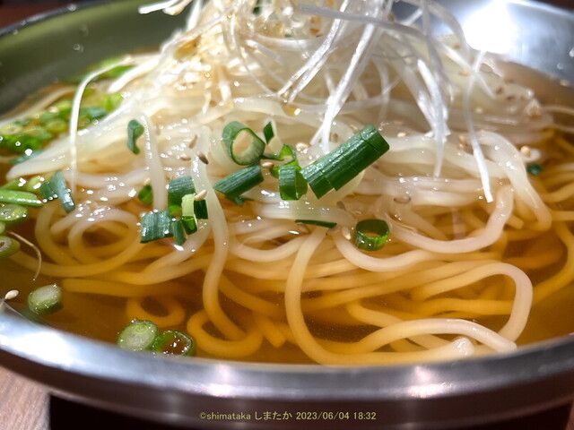 お次は【冷麺 麺大盛り】 前回よりスープがすっきりと澄んだ味わいになってました。