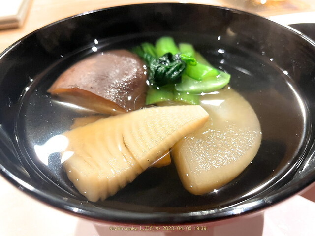 《椀物》この日は筍,大根,しいたけ,青菜(?)