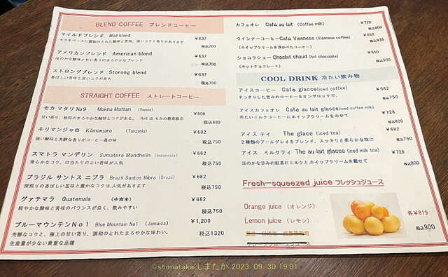 メニュー(ラミネートしてないのが良いですね)