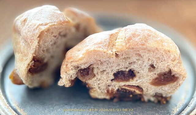 イチジクとくるみパンは,イチジクとくるみがパン生地の中で偏っていたりするけど,やはりパン生地が家庭的な味。自分はこういうパンの味スキ。